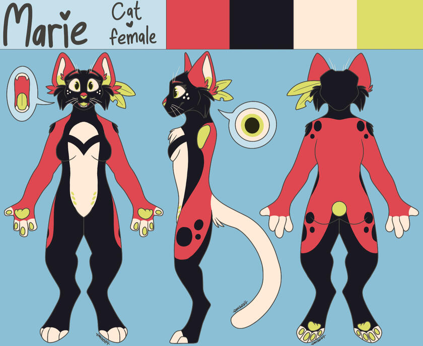 All MYO reference sheets will include a front view, a back view, name, species, gender, and color pallet with a starting price of $30. Additions are listed below: